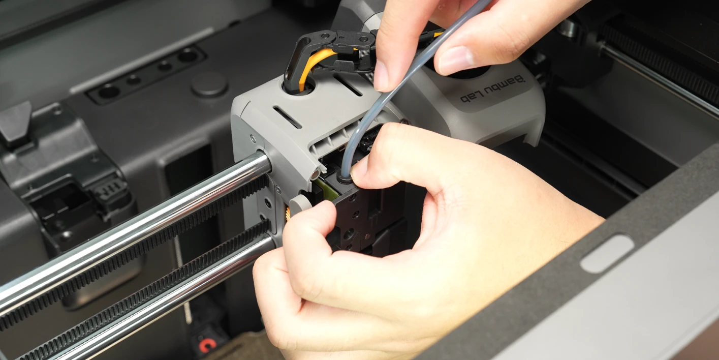 หลังจากประกอบชิ้นส่วนกลับเข้าที่เรียบร้อยแล้ว ให้เปิดเครื่องพิมพ์และดำเนินการ โหลดเส้นพลาสติก (Filament Loading) และดึงเส้นพลาสติกกลับ (Filament Retraction) อย่างละหนึ่งครั้งเพื่อตรวจสอบการทำงาน