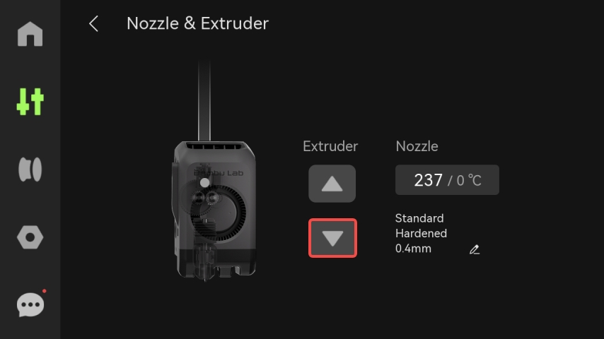 - หากยังคงไม่สามารถขับเส้นพลาสติกออกมาได้: อาจเป็นไปได้ว่าทั้ง Extruder และหัวฉีดอุดตันพร้อมกัน ในกรณีนี้ โปรดทำความสะอาดหัวฉีดตามคู่มือ P2S Nozzle Clog Cleaning Guide อีกครั้ง แล้วจึงทำการตรวจสอบใหม่