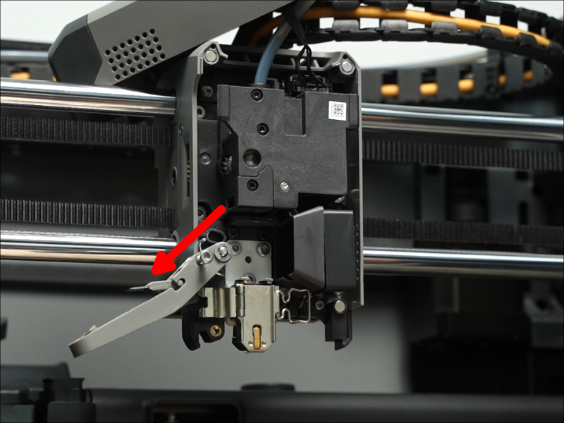 - ตัดเส้นพลาสติก: กดที่ก้านตัดเส้น ที่อยู่ด้านซ้ายของเครื่องเพื่อตัดเส้นพลาสติกที่ค้างอยู่ในหัวฉีด
