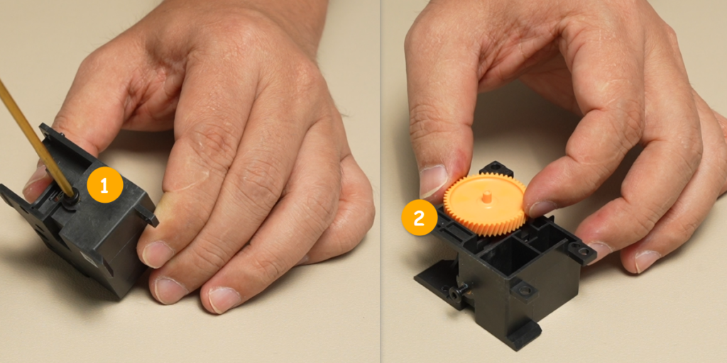 ติดตั้งเฟืองตาม ใส่เฟืองตามกลับเข้าไปที่ฝาครอบด้านหน้าของ Extruder