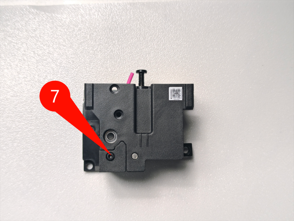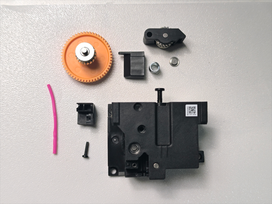 แยกชิ้นส่วน Extruder: แยกตัว Extruder ออกจากเซ็นเซอร์เช็คเส้นพลาสติก และนำชิ้นส่วนตัวดันเส้น Extruder ออกมา ตัวเซนเซอร์เช็คเส้นพลาสติก ยังคงติดอยู่ในเครื่อง ไม่ต้องถอดออกมา