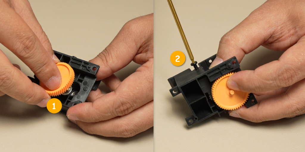 ติดตั้งเฟืองขับ (Drive Gear): ติดตั้งชุดเฟืองขับกลับเข้าที่และขันสกรูให้แน่น