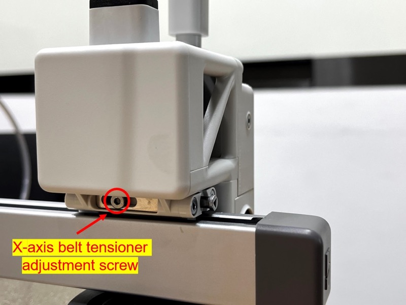 ตัวตั้งสายพานแกน X จะเป็นน้อตที่สามารถขันและปรับความตึงได้ ซึ่งจะอยู่บนตำแหน่งหัวฉีด ตัวเครื่องจะมีเซนเซอร์ ที่จะคอยตรวจจับความตึงสายพาน ถ้าสานพานหย่อนก็จะเตือนขึ้นมาที่หน้าจอ
