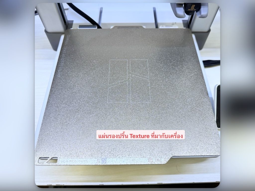 แผ่นฐานแบบหยาบ จะเป็นเป็นที่ มีการเคลือบ PEI ลงไปบนแผ่น เหมาะสำหรับปริ้นเส้น PLA / PETG และ TPU ข้อดีของแผ่น Texture ก็คือ ไม่จำเป็นต้องทากาว หลังจากปริ้นเสร็จ เมื่อแผ่นเย็น งานจะหลุดออกมาเอง สำหรับการทำความสะอาดให้เช็ดด้วย แอลกฮอล์ ก่อนปริ้นทุกครั้ง เพื่ดกำจัดคราบน้ำมันจากนิ้วมือ ที่ไปแตะที่แผ่น
