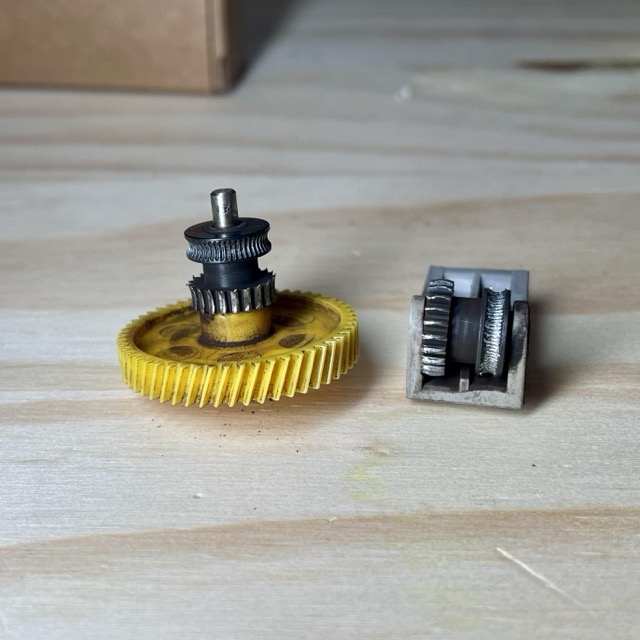 สำหรับชิ้นส่วนนี้จะอยู่ในชุดดันเส้น ซึ่งระบบเฟือง อาจจะแตกต่างกันไป ตามรุ่นและยี่ห้อเครื่อง แต่หลักการทำงานจะคล้ายๆ กัน คือมีเฟืองที่มีร่องฟันแหลม สำหรับจิกเส้นพลาสติก แล้วดันไปที่หัวฉีด ซึ่งถ้าใช้เครื่องมานาน และไม่ได้ทำความสะอาด อาจจะมีเศษพลาสติก ติดและฝังตามร่องเฟือง จนทำให้ร่องฟันตื้น กดเส้นพลาสติกไม่ลง ทำให้เส้นที่ถูกดันลงมา ออกมาไม่สม่ำเสมอ หรือขาดหายไปเป็นช่วงๆ