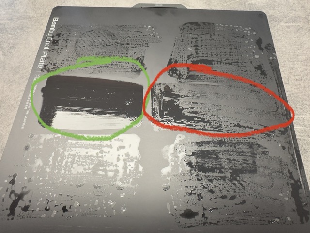 หลังจากล้างและทำความสะอาดแผ่นแล้ว จะไม่เอานิ้วมือ ไปแตะที่แผ่น จะหยิบและจับแค่ตรงขอบ เพราะนิ้วมือ จะมีน้ำมัน ซึ่งถ้าไปติดที่แผ่น ก็จะทำให้พลาสติกไม่ติด เวลาปริ้น แต่ถ้าพลาดเอามือไปแตะ ก็อาจจะใช้แอลกฮอล์ล้างแผล 75% ที่เป็นน้ำสีฟ้าๆ หรือจะใช้ IPA ที่เป็น ไอโซโพพลิล แอลกฮอล์ เอามาเช็ดที่ฐานปริ้น เพื่อล้างคราบน้ำมันจากนิ้วมือก็ได้