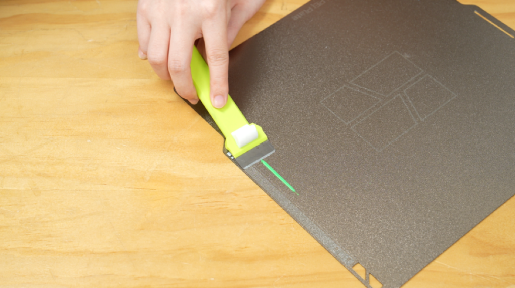 ตัวเครื่องจะมีแถมใบมีดไป แต่จะไม่มีด้าม ซึ่งตัวด้าม จะต้องไปปริ้นเอง โดยไฟล์ด้าม จะอยู่ในเครื่อง สามารถกดปริ้นแล้วนำมาประกอบ สำหรับใช้แซะงานออก ชื่อไฟล์ Scraper Grip