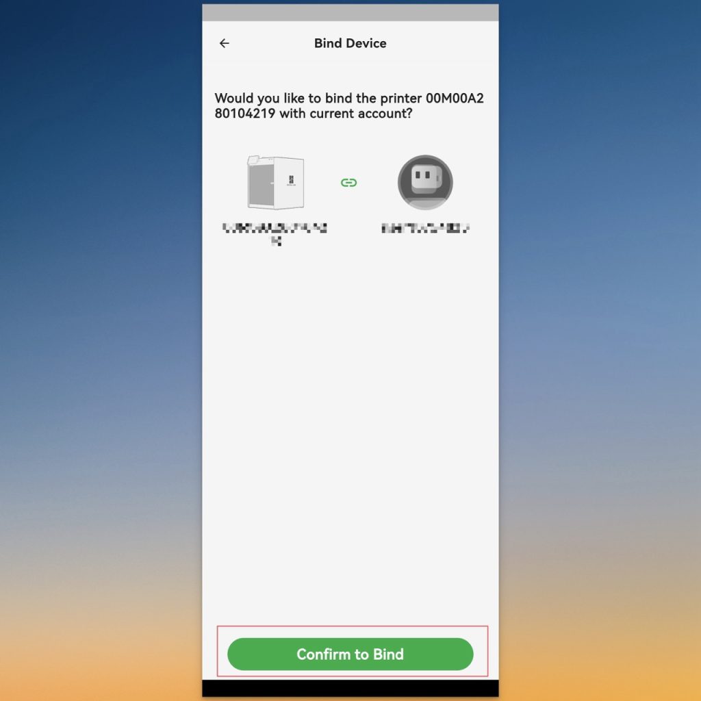 เมื่อ Scan แล้ว ตัว App จะขึ้นหน้าต่าง Bind Device ที่จะมีแสดง Serial Number กับ ชื่อ Account ที่สร้างขึ้นมา ให้กด Confirm to Bind เพื่อผูกเครื่องเข้ากับบัญชี