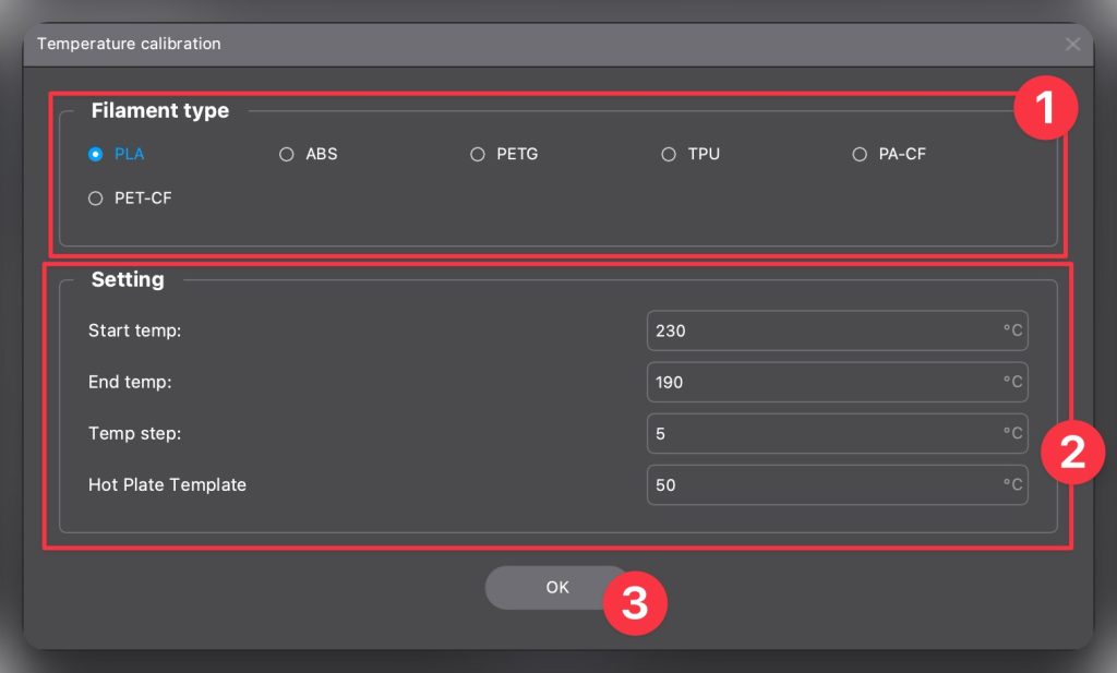 การหาค่าความร้อนของเส้น Filament จะเป็นเรื่องที่ทำได้ง่ายที่สุด และแนะนำให้ทำ เพราะเส้นพลาสติก ต่อให้เป็นยี่ห้อเดียวกัน แค่คนละสี ก็อาจจะใช้ความร้อนในการฉีด ที่แตกต่างกัน หรือเป็นเส้นยี่ห้อเดียวกัน ชนิดเดียวกับ สีเดียวกัน แต่ซื้อมาต่างเวลากัน หรือคนละ Lot ความร้อนที่ใช้ฉีด ก็อาจจะแตกต่างกันก็ได้ ดังนั้นการหาค่าความร้อนที่เหมาะสมของเส้นพลาสติก ชนิดนั้น จะช่วยให้งานที่ปริ้นออกมามีคุณภาพงานที่ดีขึ้น