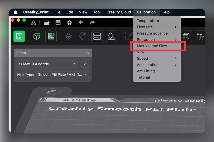 หลังจากปริ้นเสร็จ ตัวโมเดลที่ปริ้นออกมาจะมีบางส่วนที่ เส้นออกมาไม่สม่ำเสมอ ซึ่งเป็นเรื่องปกติ ไม่ต้องกังวัล ให้เอาไม้บรรทัด มาวัดความสูงจากชั้นล่างสุด ไปถึงชั้นที่เส้นเริ่มออกมาไม่สม่ำเสมอ ซึ่งต้องสังเกตุให้ดี มองให้รอบๆตัวโมเดล เมื่อวัดได้แล้ว ให้เอาค่านั้นมาใส่ในสูตรเพื่อหาค่า Max Volumetic Speed