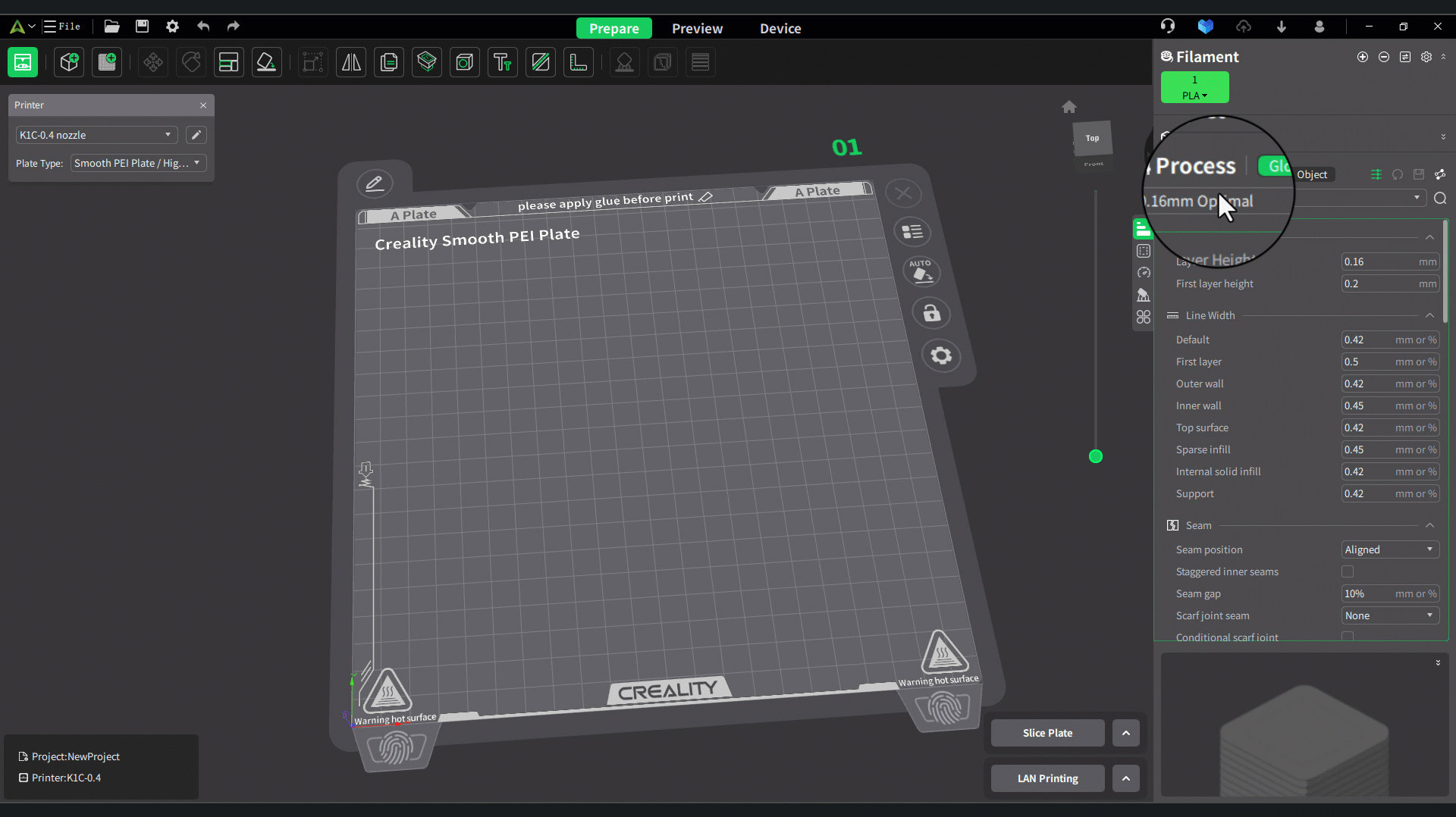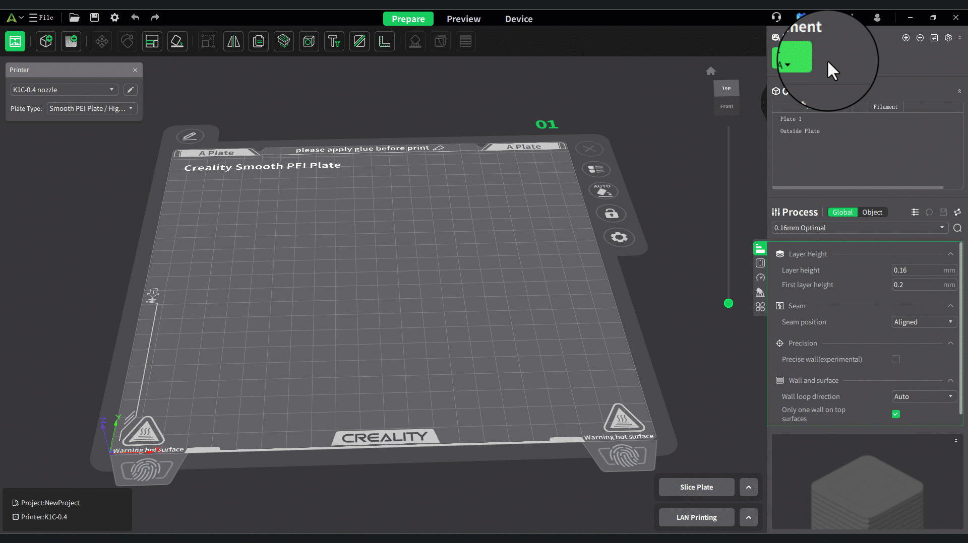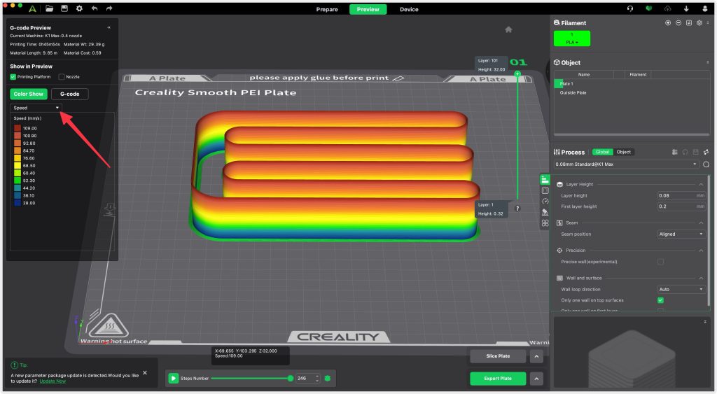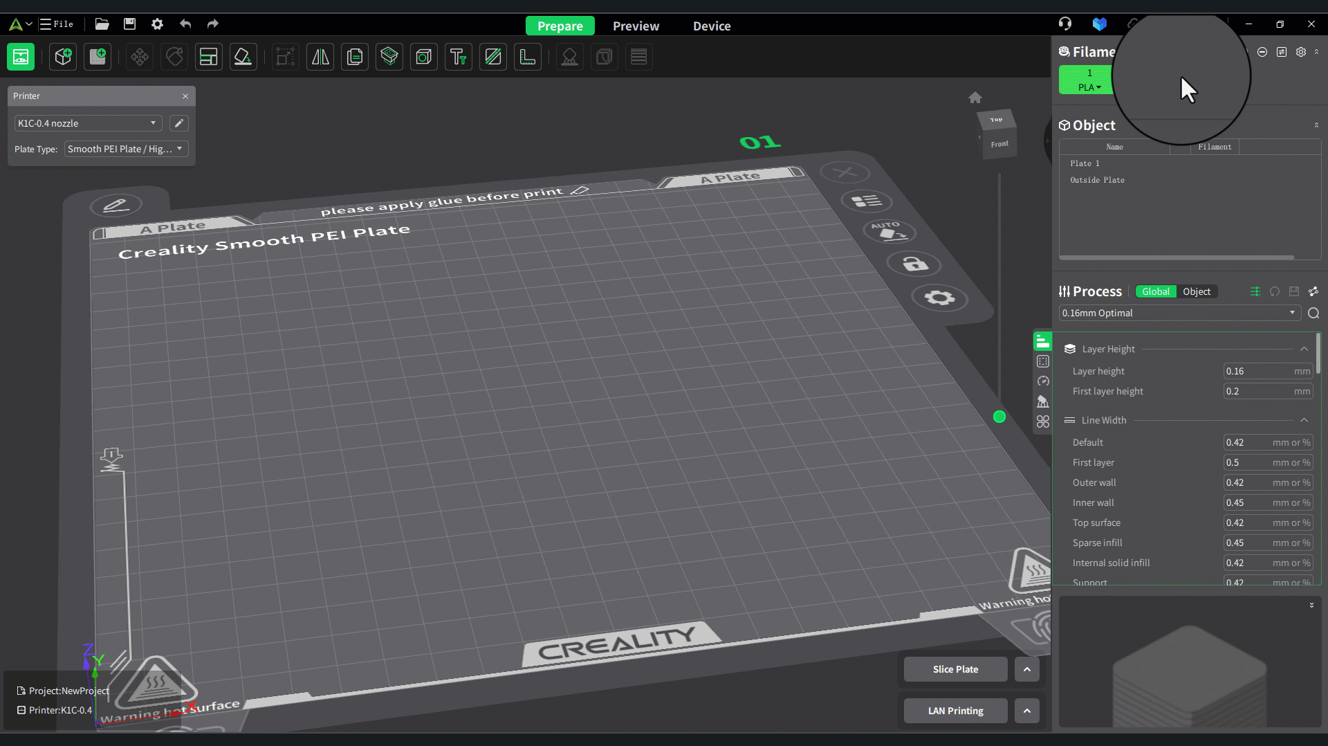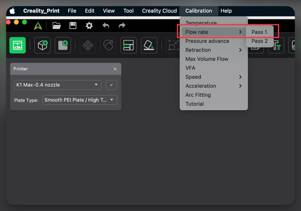 การหาค่าอัตราการไหล ผ่านโปรแกรม Creality Print จะมีขั้นตอนการทำอยู่ 2 ขั้นตอน เวลาทำให้ทำตามลำดับ เพื่อที่จะเอาค่าทีได้จากขั้นตอนแรก ไปรวมกับค่าที่ได้ขั้นตอนที่ 2 Flow rate ในโปรแกรม Creality Print จะเรียกว่า Flow Ratio