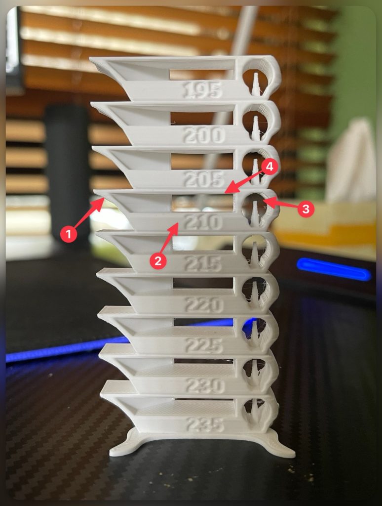 การอ่าน Temp Tower Calibration ถ้าในรูปค่าที่เหมาะสมคือ 210 องศา