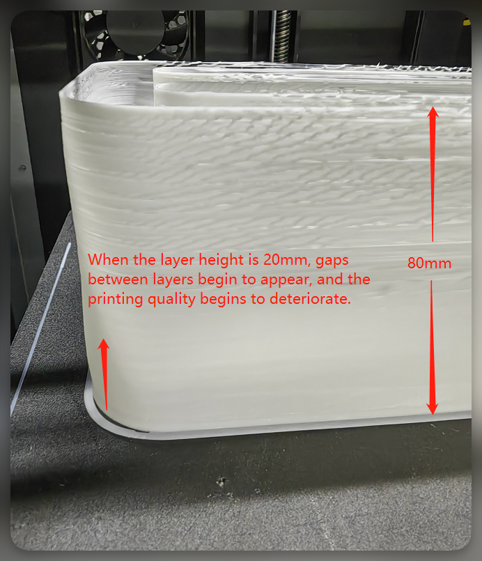 ในตัวอย่าง ชั้นที่เส้นออกมาแล้วเริ่มไม่สม่ำเสมอจะเริ่มตั้งแต่ความสูง 20 มิลลิเมตร ขึ้นไป ให้นำค่านี้ไปแทนค่าในสูตร