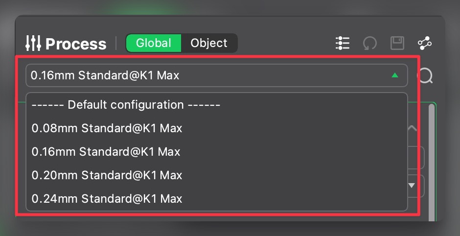 10. Process preset แทบสำหรับการตั้งค่าการพิมพ์