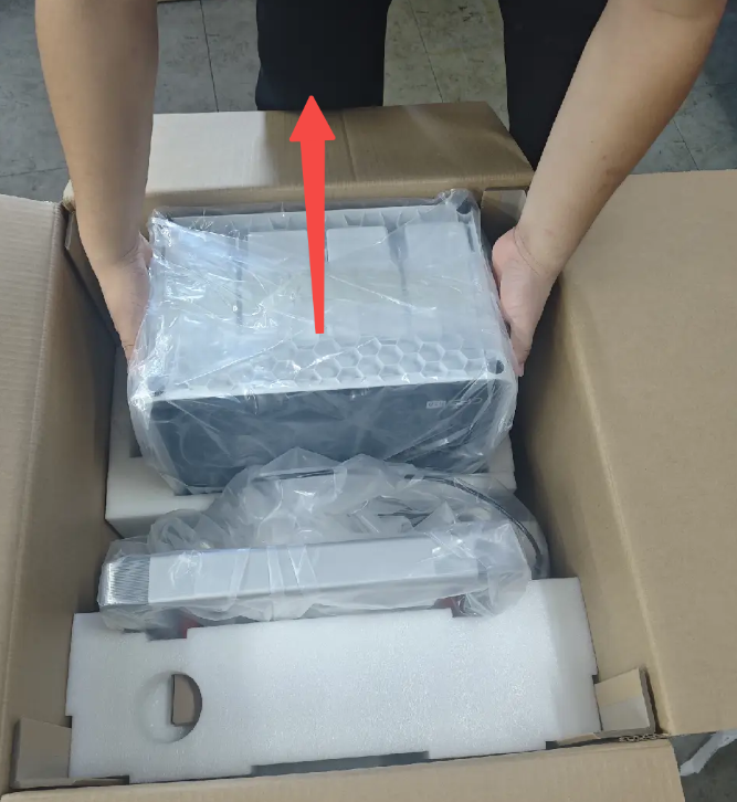 1. เปิดกล่องด้านนอก: ใช้กรรไกรหรือเครื่องมือที่เหมาะสมตัดเทปปิดกล่องด้านบนและเปิดฝากล่องออก