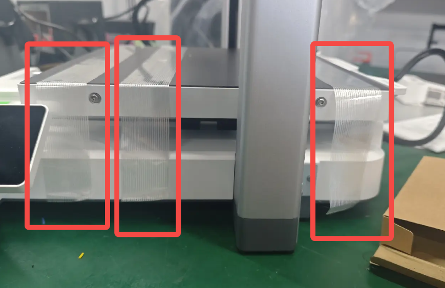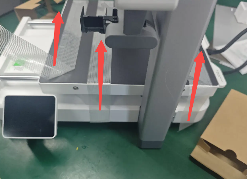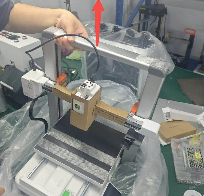 9. นำวัสดุห่อหุ้มออก: นำเครื่องพิมพ์ออกจากถุงกันความชื้น นำเทปที่ยึดแกน Z ด้านบนออก และนำกระดาษแข็งที่ยึดหัวพิมพ์ออก