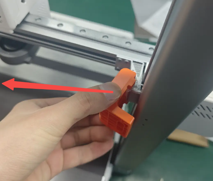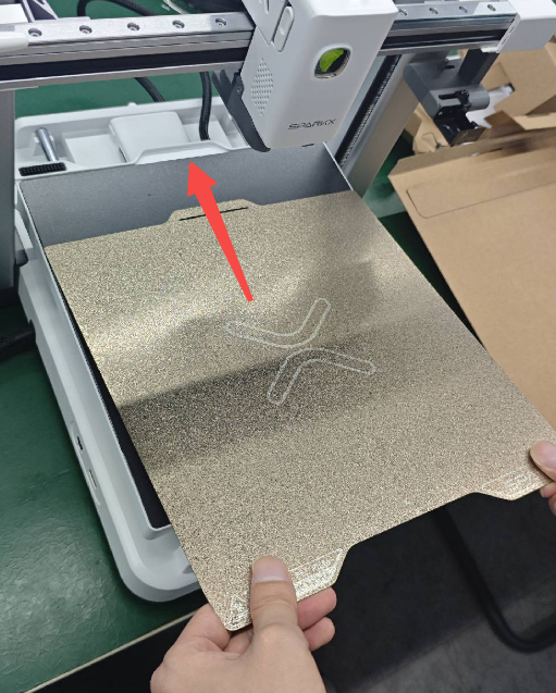 7. นำแผ่น PEI ออก: นำแผ่นพิมพ์ PEI ที่วางอยู่ด้านข้างออก