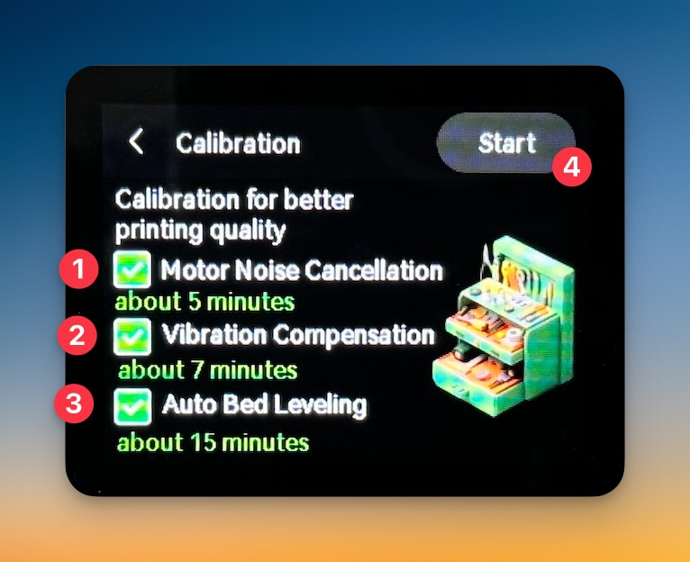 2. Vibration Compensation เป็นการ Calibrate เพื่อชดเชยการเคลื่อนที่ของมอเตอร์ เพื่อลดแรงสั่น เวลาปริ้นเร็วๆ
