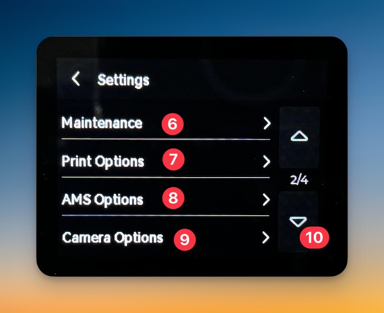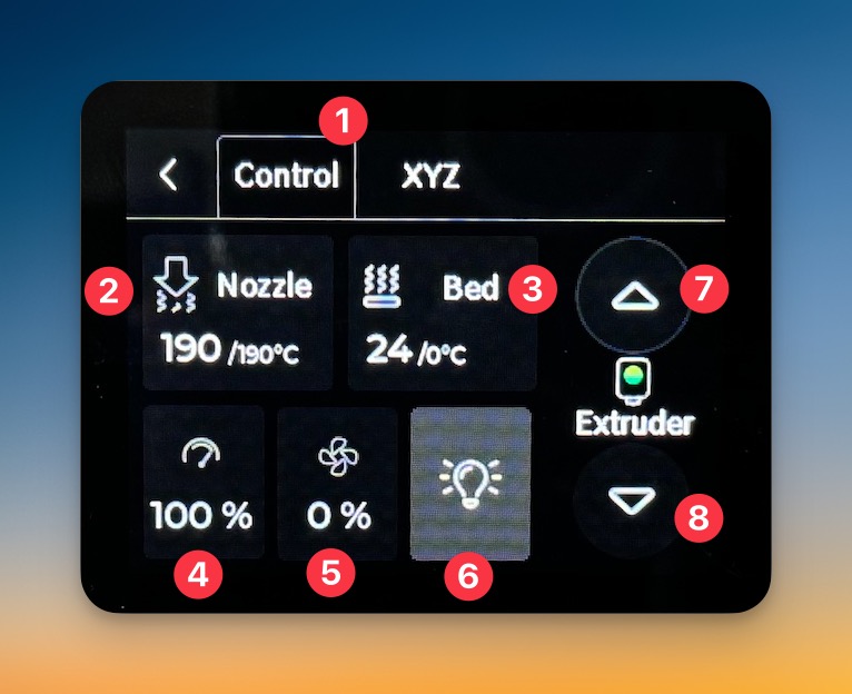 อธิบายคำสั่งในหน้าจอ Bambu lab A1 Series