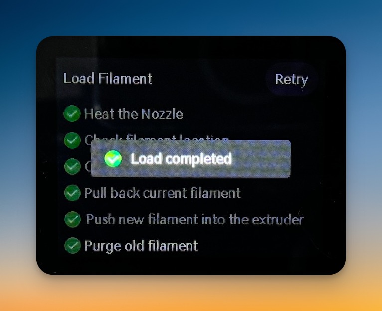 ถ้าไม่มีปัญหาอะไร ตัวเครื่องจะแสดง หน้าต่าง Load Completed แสดงว่า เครื่องปริ้นพร้อมใช้งานแล้ว
