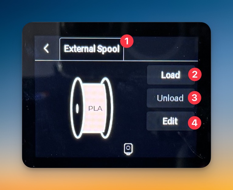 3. Filament สำหรับการโหลดเส้นพลาสติกเข้าและออก รวมถึงการกำหนดชนิดเส้นพลาสติก
