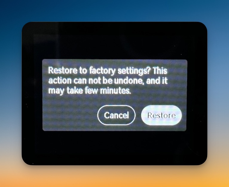 เวลาที่เครื่องปริ้นมีปัญหา เช่นเชื่อมต่อ Wifi ไม่ได้ หรือมี Error แสดงขึ้นมาบ่อยๆ ทั้งที่ก็แก้ไขไปแล้ว ทางร้านแนะนำให้ทำ Factory Reset เพื่อคืนค่ากลับเป็นค่าเดิม หรือค่าเริ่มต้นที่มาจากโรงงาน อาจจะช่วยแก้ปัญหาได้ สำหรับหน้าต่างนี้จะอยู่ในส่วนของ Setting > Maintenace > Facotry Reset ให้กด Restore แล้วรอ ตัวเครื่องจะทำการ Restart แล้วย้อนกระบวนการใหม่ เหมือนได้เครื่องมาครั้งแรก