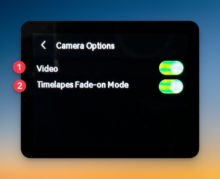 9. Camera Option สำหรับเลือกโหมดการอัด วิดีโอ Timelapse