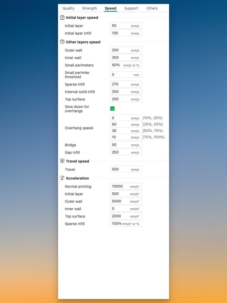 | Overhang speed | ความเร็วของการปริ้นส่วนที่ยื่นออกมา |