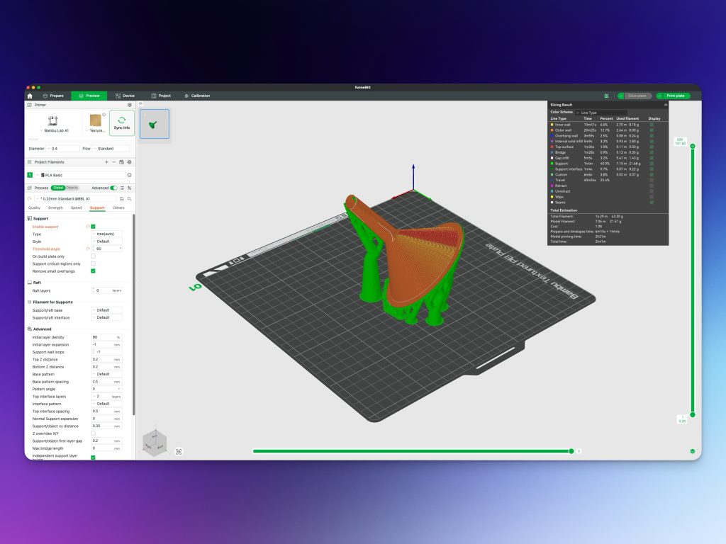 Support / raft interfaceกำหนดว่าจะใช้เส้นในช่องไหนของ AMS ในการปริ้น ผิวที่แตะกับตัวชิ้นงานหรือโมเดล