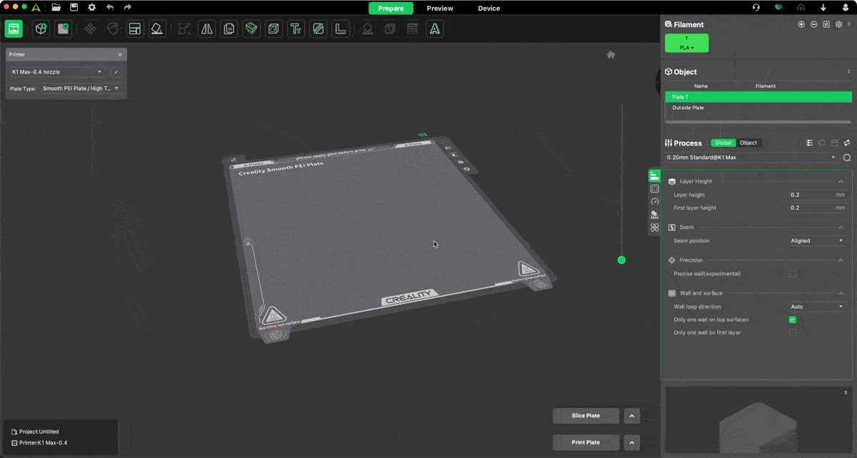สำหรับโปรแกรม Craelity Print เวอร์ชั่น 5 จะเป็นเวอร์ชั่นใหม่ล่าสุด ที่เปลี่ยนทั้งรูปร่างหน้าตา และการทำงานของโปรแกรม ตัวโปรแกรมมีแม่แบบมาจาก Orca Slicer ซึ่งเป็นโปรแกรม Open source อีกหนึ่งตัว ที่นิยมใช้กันมาก เพราะปรับแต่งได้เยอะ และยังรองรับการปริ้นหลายสี สามารถใช้ได้กับเครื่องรุ่น K2 Plus ตัวโปรแกรมมีโหมด Monitor ที่สามารถเรียกดูภาพจากตัวเครื่องมาแสดงทีโปรแกรม รวมถึงยังรองรับการส่งไฟล์ผ่าน Wifi