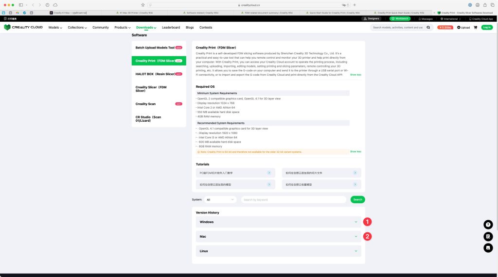 สามารถเข้าไปเลือก Download ได้ที่เว็บของทาง Creality โดยที่เว็บจะมีหลายเวอร์ชั่น ให้เลือก เวลาเลือกให้เลือกตัวที่อยู่ด้านบนสุด จะเป็นเวอร์ชั่นล่าสุด