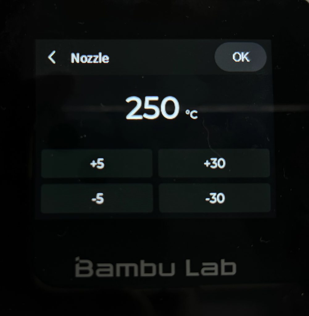 • ตั้งอุณหภูมิหัวฉีดที่ 250°C และรอจนกว่าความร้อนหัวฉีด ถึงค่าที่ตั้งไว้