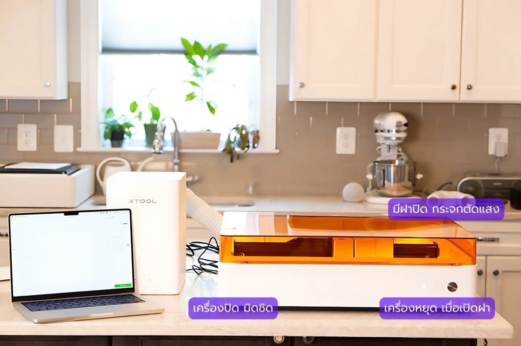 ทำให้เครื่อง xTool ที่จำหน่ายอยู่ จัดอยู่ใน เลเซอร์ระดับ 1 หรือ Class 1 ที่มีความปลอดภัยต่อผู้ใช้งาน สามารถนำใปใช้สอนในห้องเรียน หรือใช้ในออฟฟิศ ได้อย่างปลอดภัย