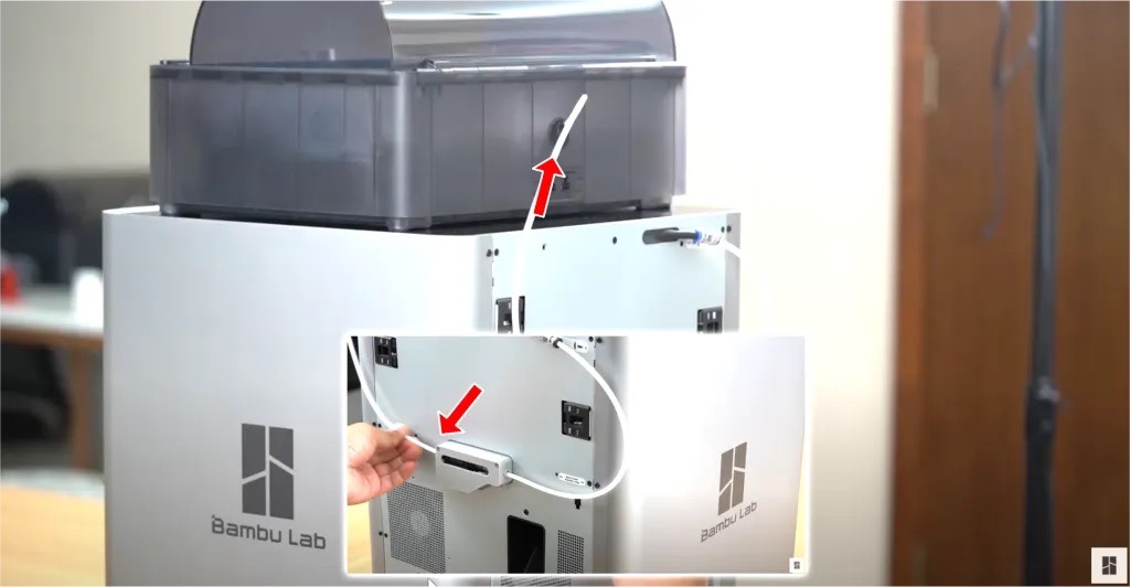 เส้นที่ไปกับเครื่องอาจจะมีสี หรือชนิดไม่ตรงกับที่เห็นในวิดีโอ อันนี้ขึ้นอยู่กับโรงงาน สำหรับตัว AMS จะอยู่ด้านในเครื่อง