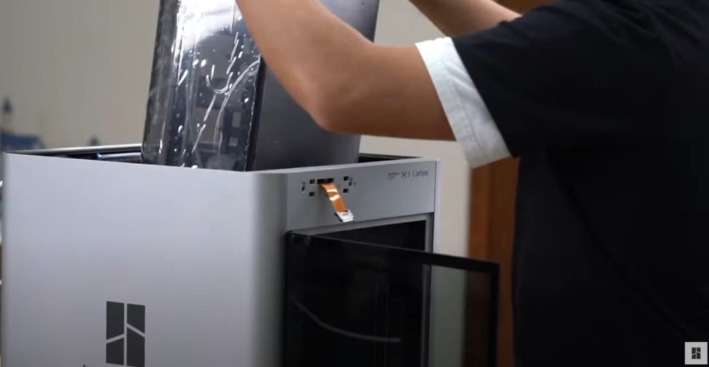 ด้านบนของเครื่องรุ่น X1 Series จะเป็นกระจก Temper ที่สามารถยกออกมาได้ ให้นำกระจกออก แล้วนำโฟมที่อยู่ด้านในออกให้หมด โฟมบางชิ้น อาจจะดึงตรงๆ ไม่ออก ให้บิดโฟมไปด้านข้าง หรือขย้บโฟม ไปในmuj ที่มีช่องว่าง เพื่อดึงโฟมออก สำหรับกระจกเวลาวาง ให้ระวังเป็นพิเศษ