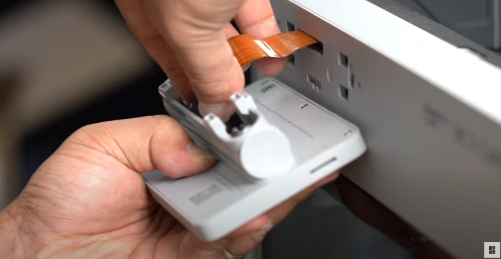 หน้าจอ Touch Screen จะอยู่ในกล่องอุปกรณ์ ที่ยกออกมาตอนแรก ซึ่งการต่อหน้าจอ Touch Screen ก็จะใช้สายแพ ที่อยู่ด้านหน้าเครื่องเสียบเข้าไปให้สุด
