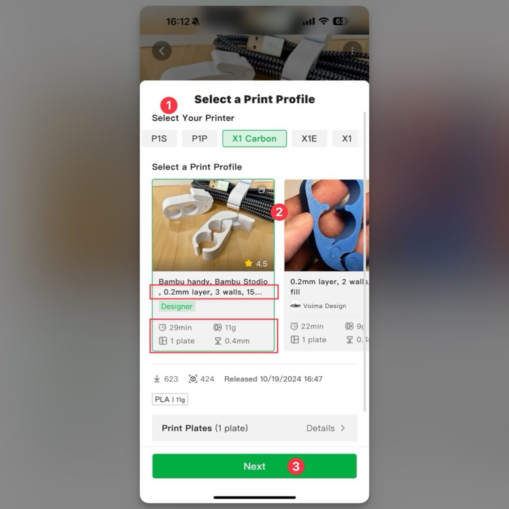 หลังจากที่กดปุ่ม Prepare to Print แล้ว ตัว App จะพาเข้าไปเลือก Profle ที่ผู้ใช้จะต้องเลือกก่อน ที่จะส่งไฟล์ไปปริ้น ซึ่งการเลือกจะไล่ลำดับจากบนลงล่าง