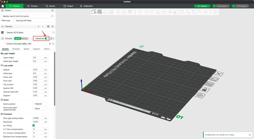 เป็นแทบที่สำคัญที่สุด เพราะเอาไว้ใช้ในการโหลดโมเดล 3 มิติ มาจัดท่าท่างในการพิมพ์ รวมไปถึงเลือกค่าการพิมพ์ ที่ต้องการจะใช้ปริ้น ซึ่งในแทบนี้จะมีค่าให้ตั้งและเลือกใช้อยู่หลายตัว