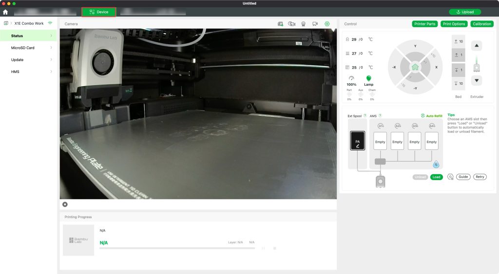 6. Upload สำหรับส่งไฟล์งานขึ้นไปเก็บไว้ใน บัญชี Bambu Account