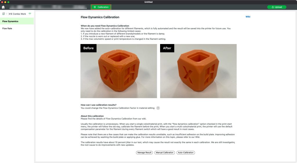 ในหน้าต่าง จะเป็นการสร้างไฟล์สำหรับ Calibrate เครื่องในส่วนของการฉีดพลาสติก เพื่อที่จะหาค่าที่เหมาะสม สำหรับเส้นที่จะใช้พิมพ์ สำหรับหน้านี้ จะมีบอกวิธีการ ในการสร้างไฟล์ และการดูผลลัพธ์ เพื่อที่จะเอาค่าที่ได้ มาใส่ในโปรแกรม
