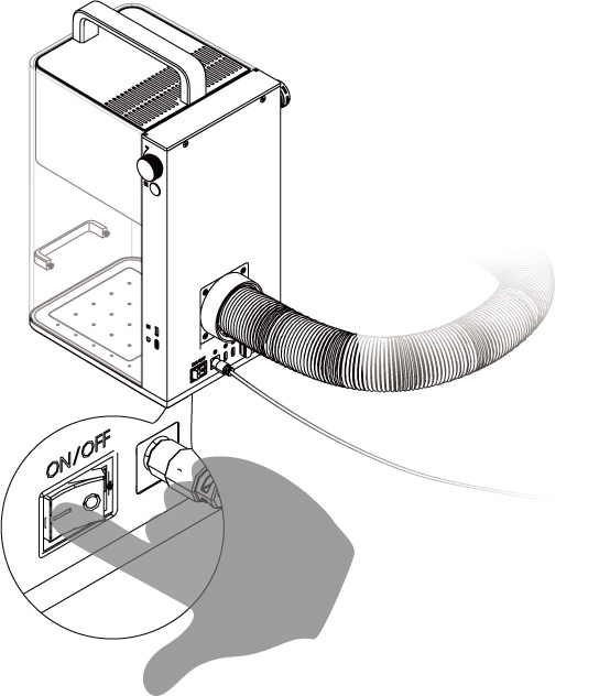 เพื่อดูดควันและป้องกันไม่ให้ลำแสงเลเซอร์รั่วไหลออกมา ตรวจสอบให้แน่ใจว่าได้ติดตั้งท่อได้ถูกต้องในระหว่างการทำงานด้วยเลเซอร์
