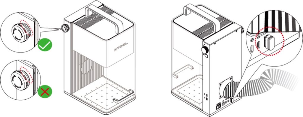 ตรวจสอบ xTool F1 ปุ่มฉุกเฉินและ USB Key
