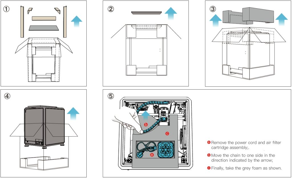 เครื่องจะอยู่ในถุงพลาสติก สามารถที่จะดึงถุงพลาสติก ขึ้นมาได้เลย ตัวถุงมีความเหนียว ไม่ขาด ให้หัวข้อที่ 5 ก่อนที่จะเอาโฟมออก ให้ดันสาย Cable Chain ในข้อ B ไปด้านหลัง แล้วค่อยดึงเอาโฟมออก
