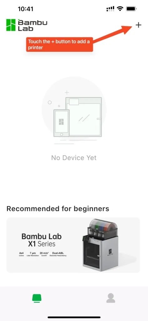 เปิด App Bambu Handy แล้วกดเครื่องหมาย +