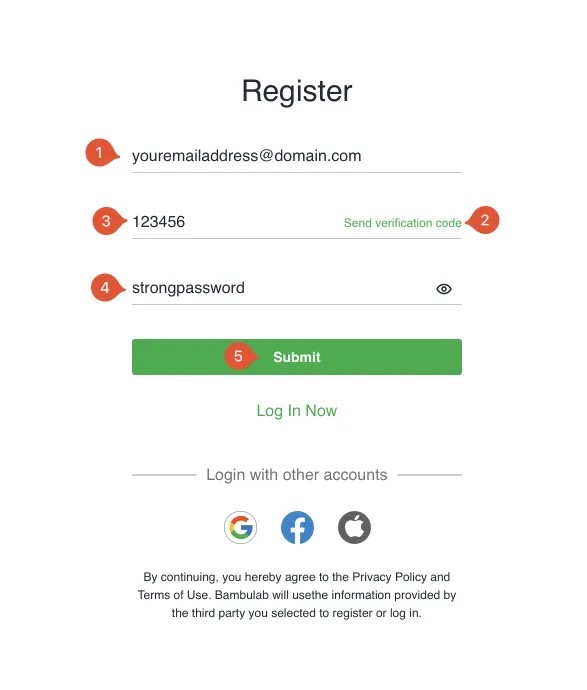 การสร้างบัญชี Bambu สามารถทำได้ ผ่านทางโปรแกรม Bambu Studio หรือจะสร้างจาก App Bambu Handy ก็ได้ เมื่อสร้างเสร็จแล้ว สามารถนำมา Log In ในโปรแกรมได้เลย