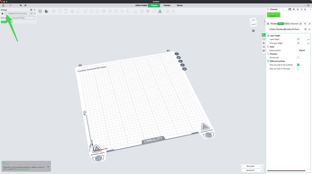 เริ่มต้นใช้งานโปรแกรม Creality Print