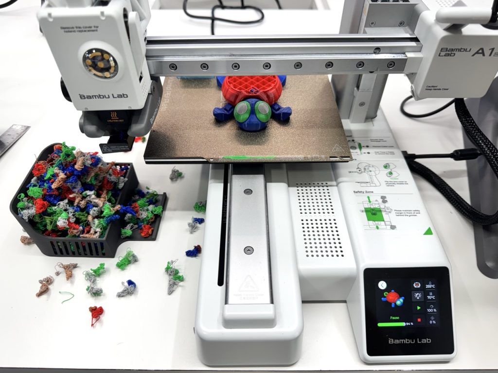 สำหรับเทคนิค ก็ไม่มีอะไรมาก ไม่ต้องตั้งค่าโปรแกรมอะไร แค่เพิ่มจำนวนของชิ้นงานที่จะปริ้นเข้าไป ยิ่งเยอะ ยิ่งคุ้ม เพราะไม่ว่าจะปริ้นงานตัวเดียว หรือปริ้นงานหลายตัว เศษที่ถูกฉีดทิ้ง จะเท่ากัน เพราะเป็นการล้างหัวแค่ครั้งเดียว ซึ่งการเพิ่มโมเดล ก็ไม่ยาก แค่กำหนดสีงานตัวแรกให้เสร็จ แล้วทำการ Duplicate ชิ้นงานขึ้นมา หรือจะเอาโมเดลที่ต่างกัน มาปริ้นรวมกันได้ ถ้าโมเดลตัวนั้น ใช้เส้นสีในชุดเดียวกัน กับที่ใส่ในกล่อง AMS สำหรับการลงสีโมเดล สามารถเข้าไปอ่านได้ การปริ้นงานหลายสีด้วยกล่อง AMS